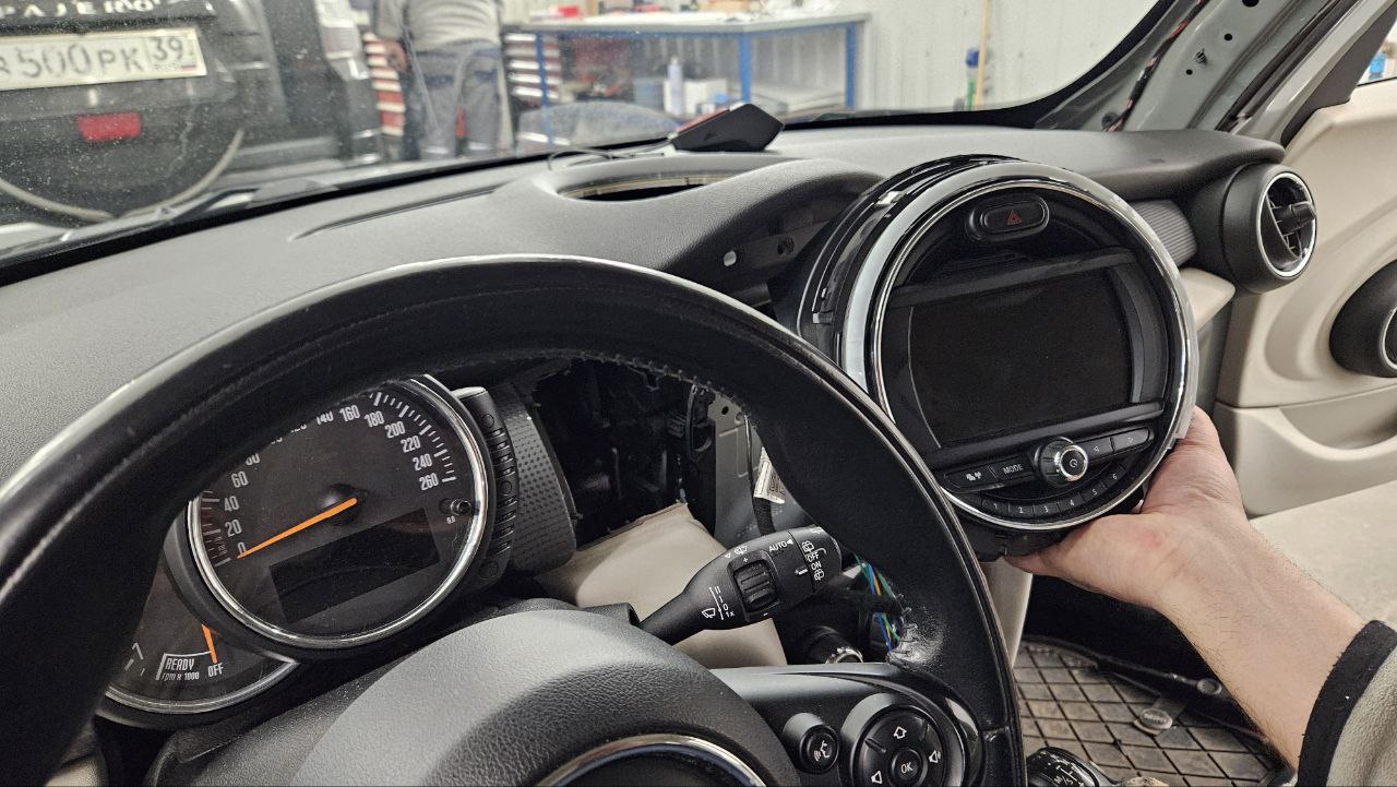 Замена штатного головного устройства Mini Cooper 2016 на мультимедийную систему Teyes CC3L, установка камеры заднего вида.