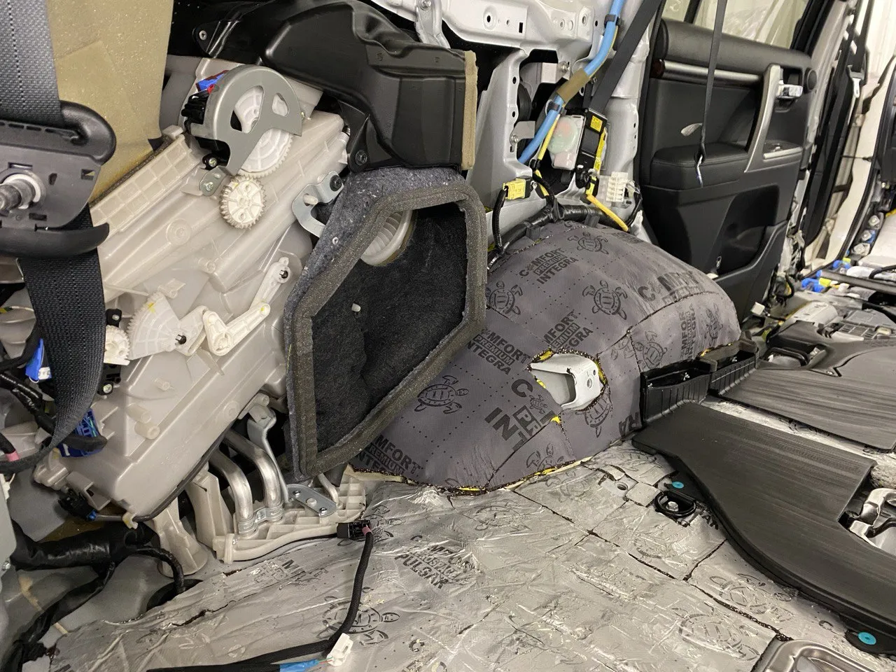 На Toyota Land Cruiser 200 (2015 г.) выполнен комплексный апгрейд по шумо- и виброизоляции салона — уже второй этап работ по повышению акустического комфорта. Всего два месяца назад владелец обратился к нам за шумоизоляцией дверей и установкой доводчиков дверей, и, оценив результат, принял решение — сделать полную шумозащиту автомобиля и обновить штатную мультимедиа систему.